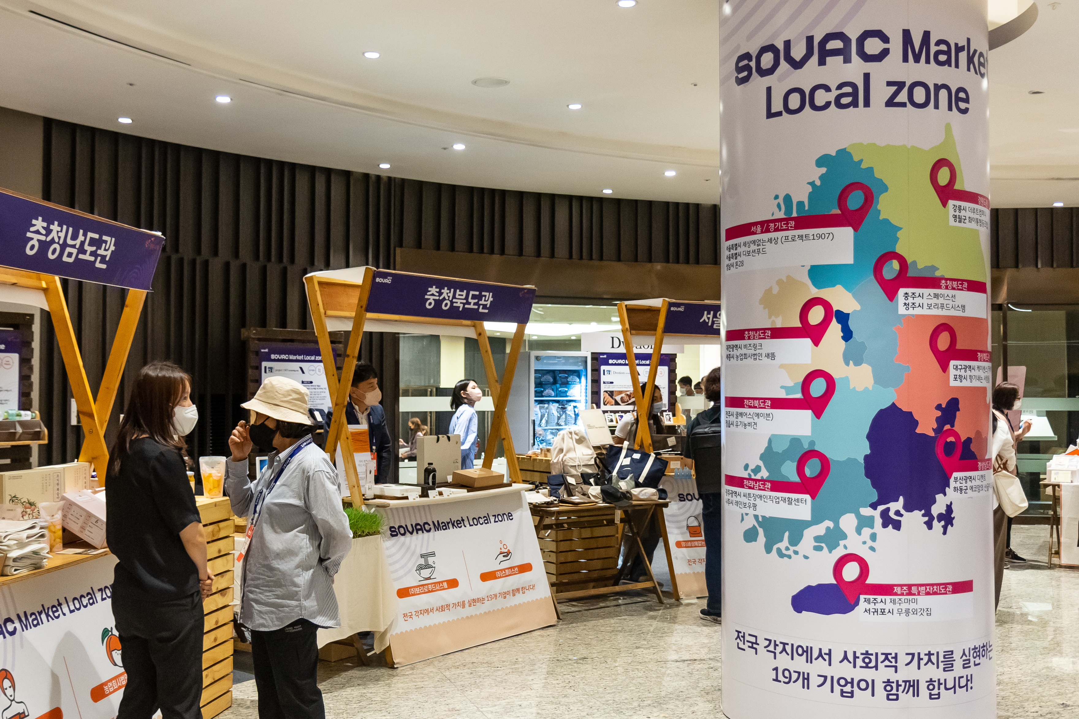 행사장 한쪽에서는 전국 지역의 로컬 제품을 만나볼 수 있는 SOVAC 마켓: 로컬존도 준비되었습니다. 전국 팔도에서 온 19개 기업들이 지역 경제 활성화에 기여하는 제품들을 선보였는데요. 로컬존에 참여한 디캔트가 지역과 어떻게 상생해 사회적가치를 만드는지 이야기를 들어보시죠.