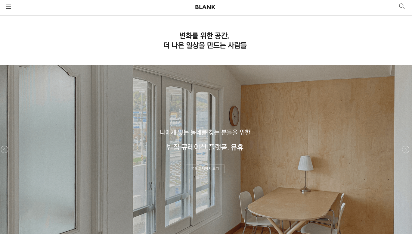 지역에 빈집을 필요한 사람과 연결해주는 일. 블랭크는 노후화된 주택을 리모델링해 머무를 이유가 있는 공간으로 재탄생시키는 일을 합니다. 단기 거주 또는 장기 숙박을 원하는 사람들에게 남해나 부산, 전주 등 다양한 지역의 빈집 정보를 제공해 연결해주는 빈집 큐레이션 플랫폼 유휴를 운영 중이죠. 나아가 블랭크는 지역 자원과 연결해 공간을 빌려주는 데서 그치지 않고 지역 허브의 역할까지 꿈꾸고 있습니다.