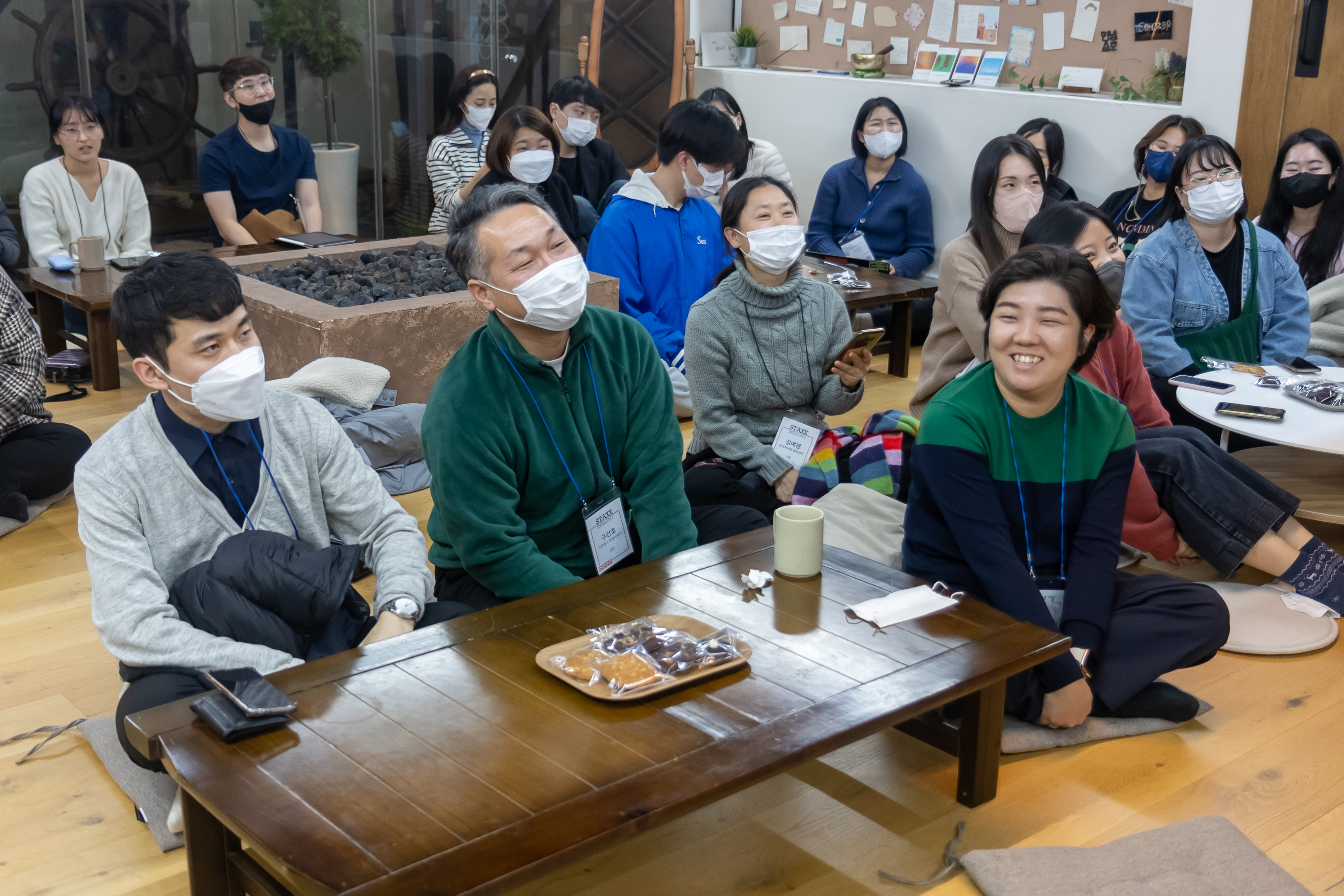 다음 세션으로 넘어가기 전에 특별한 시간이 마련되어 있었습니다. 더웨이브컴퍼니 최지백 대표와 함께하는 강릉 명주동 골목길 투어 시간인데요. 강릉이 어떤 정체성을 가지고 있는 도시인지, 그리고 다양한 이야기들을 품고 있는 브랜드들이 골목마다 어떻게 자리 잡고 있는지 살펴보는 시간이었습니다. 특히, 더웨이브컴퍼니의 로컬 크리에이터, 리모트 워커들의 공유 오피스 ‘파도살롱’은 직접 방문하여 살펴볼 수 있었죠.