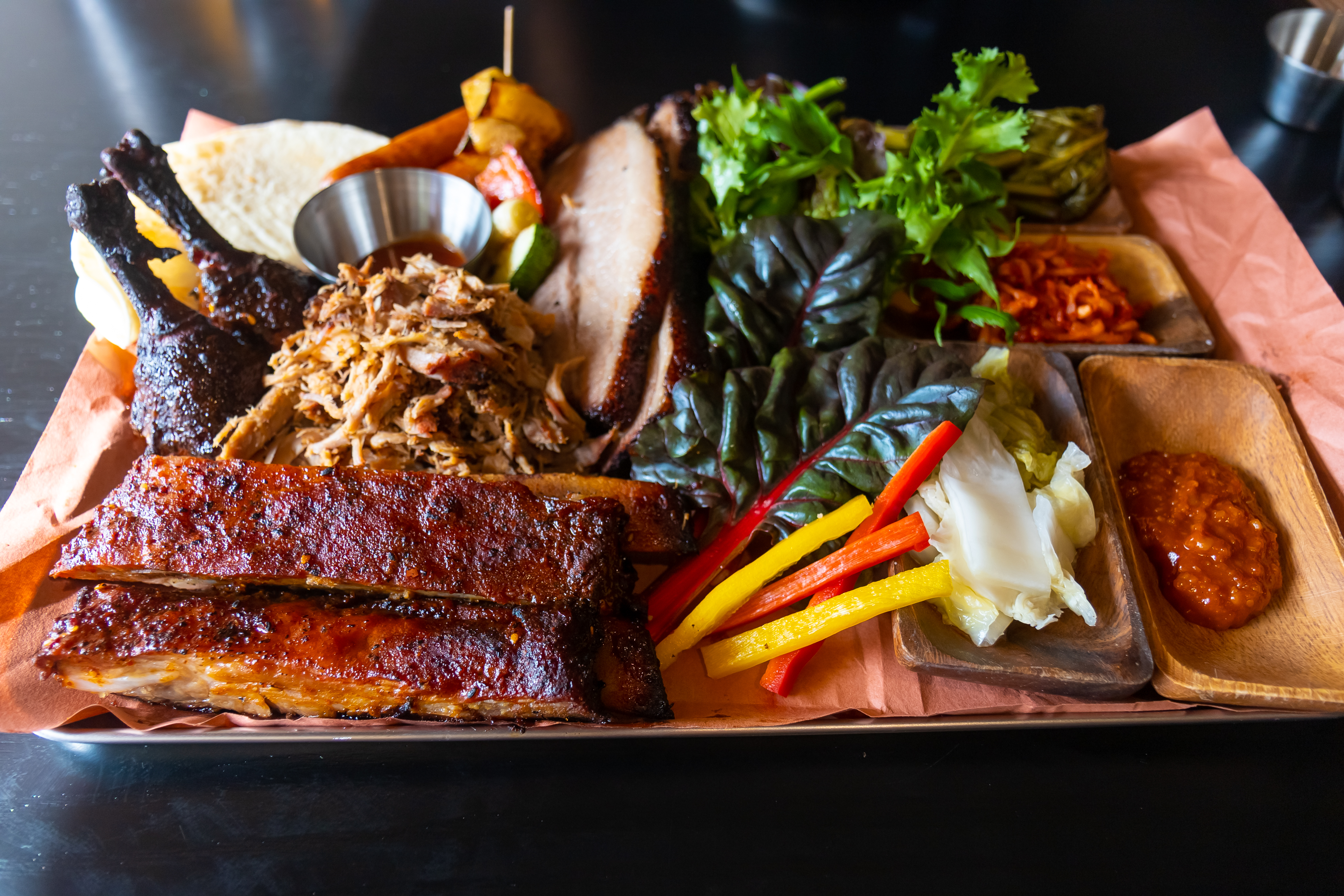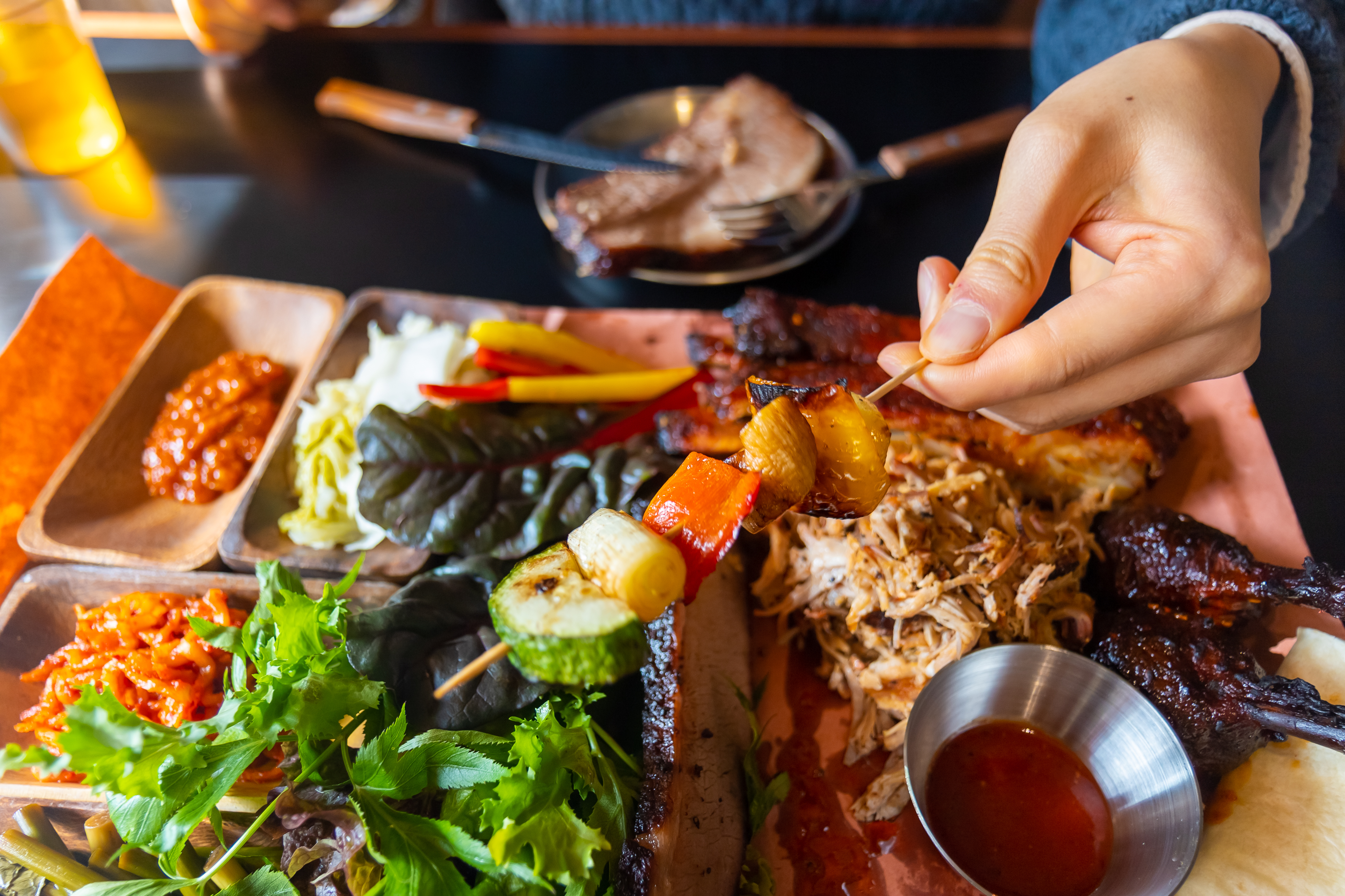 위에서부터 브리스킷, 채소구이, 치킨롤리팝, 스페어립