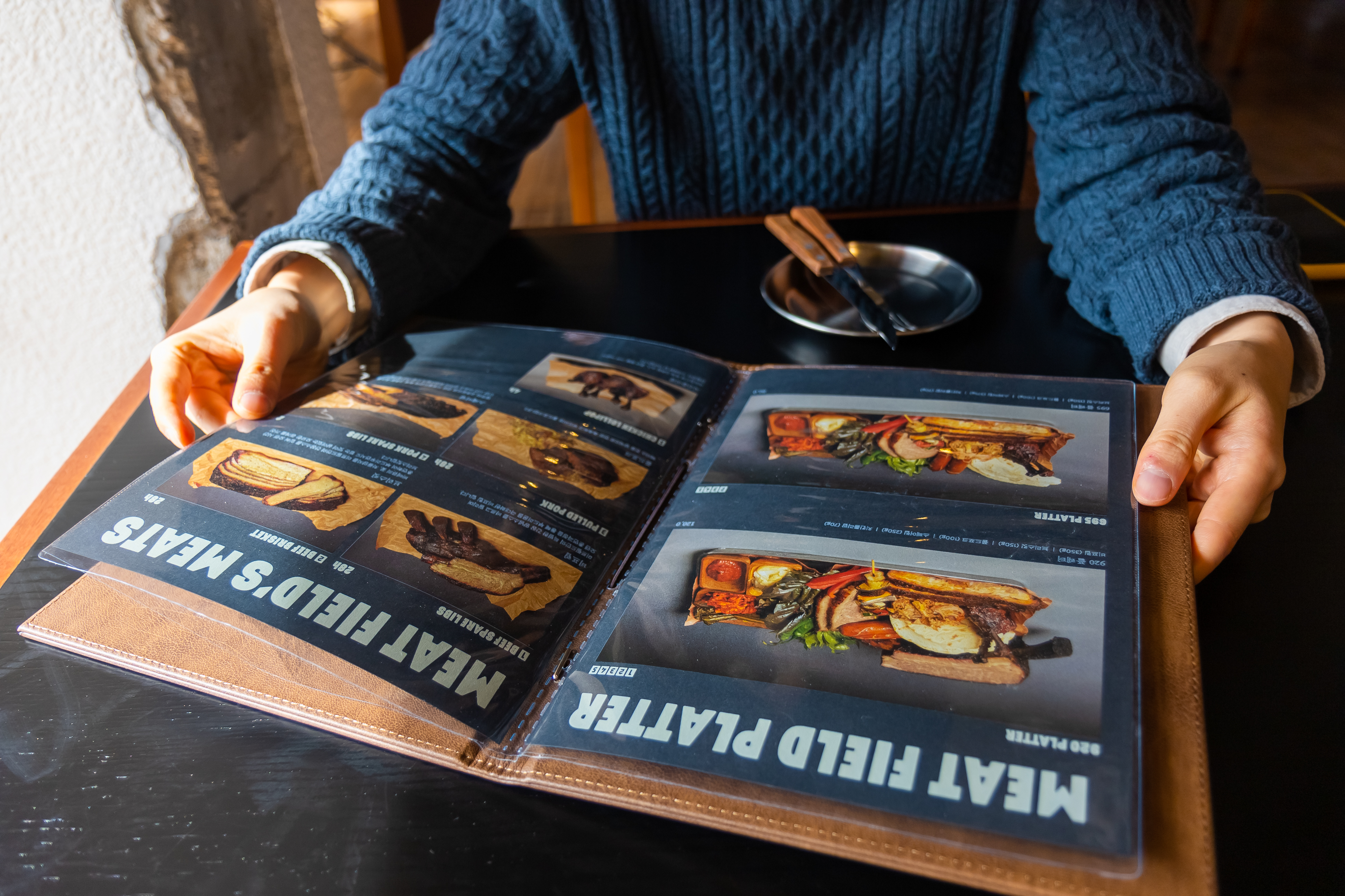 벌써부터 육향이 솔솔 나는 게 마음이 급해졌어요. 어서 주문 플리즈~!! 미트필드의 메인 메뉴는 2가지인데요. 첫 번째는 ‘920 플래터’로 소갈비 부위인 비프립, 소 가슴살 브리스킷, 스페어립, 폴드포크, 치킨롤리팝으로 구성된 한상입니다. 유사한 메뉴로는 695 플래터로 2~3인이 즐기기 좋습니다. 영주의 사과즙과 명품콩이라 불리는 부석태로 만든 고추장과 간장으로 만든 소스도 함께 나와 고기와 함께 찍어 먹으면 더할 나위 없이 맛있죠. 사이드 메뉴로는 부석태 된장찌개와 고사리가 듬뿍 들어간 브리스킷 육개장 라면이 있어요!