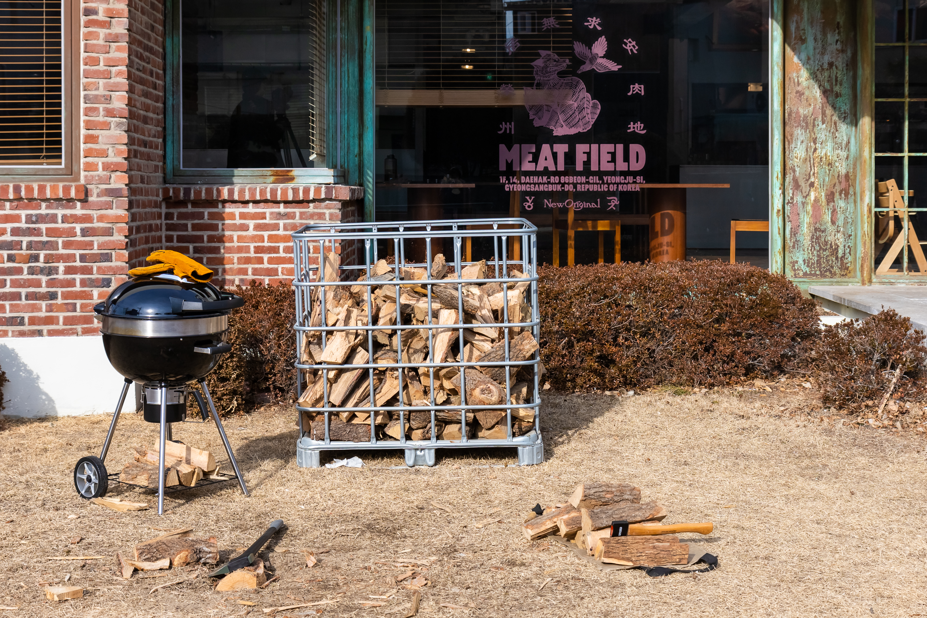 미트필드의 모든 고기는 직접 장작을 패서 긴 시간 동안 훈연하고 있다는데요. 마당 한가운데와 매장 안쪽에는 장작이 두둑이 준비되어 있었어요. 숲속 캠핑장에 온 듯한 장작 비주얼과 바비큐의 만남이라니 기대가 될 수밖에 없겠죠!