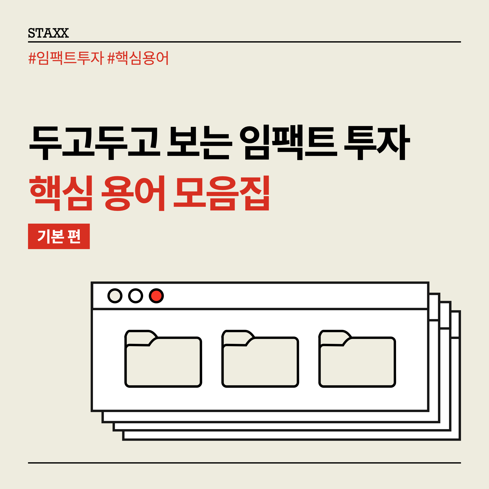 두고두고 보는 임팩트 투자 핵심 용어 : 기본 편 2022.07.01 09:42 Archive./소셜미디어 아카이브 아직 임팩트 투자가 낯설다고요?🤔기본 개념만 정복해도 반은 성공! 임팩트 투자에서 자주 쓰이는 용어를카드뉴스로 정리했어요📖 일단 저장부터 꾹~👆눈 크게 뜨고 살펴봅시다👀 가치를 쌓아 변화를 만듭니다.STAXX, the Impact Stack. 공유하기 게시글 관리 STAXX 블로그 'Archive. > 소셜미디어 아카이브' 카테고리의 다른 글 인생샷 건지는 영주 여행 코스 추천 (0) 2022.07.14 학사골목 맛집을 소개합니다 (0) 2022.07.07 [임팩트 브릿지] 교육 프로그램 현장을 소개합니다 (0) 2022.07.06 '임팩트 투자'란 무엇일까요? (0) 2022.06.29 [Q&A] STAXX에 대해 물어보세요 (0) 2022.06.27 댓글 공유하기 다른 글 댓글 이 글 공유하기 구독하기 구독하기 카카오톡 카카오톡 라인 라인 트위터 트위터 Facebook Facebook 카카오스토리 카카오스토리 밴드 밴드 네이버 블로그 네이버 블로그 Pocket Pocket Evernote Evernote 다른 글 학사골목 맛집을 소개합니다 학사골목 맛집을 소개합니다 2022.07.07 [임팩트 브릿지] 교육 프로그램 현장을 소개합니다 [임팩트 브릿지] 교육 프로그램 현장을 소개합니다 2022.07.06 '임팩트 투자'란 무엇일까요? '임팩트 투자'란 무엇일까요? 2022.06.29 [Q&A] STAXX에 대해 물어보세요 [Q&A] STAXX에 대해 물어보세요 2022.06.27 다른 글 더 둘러보기