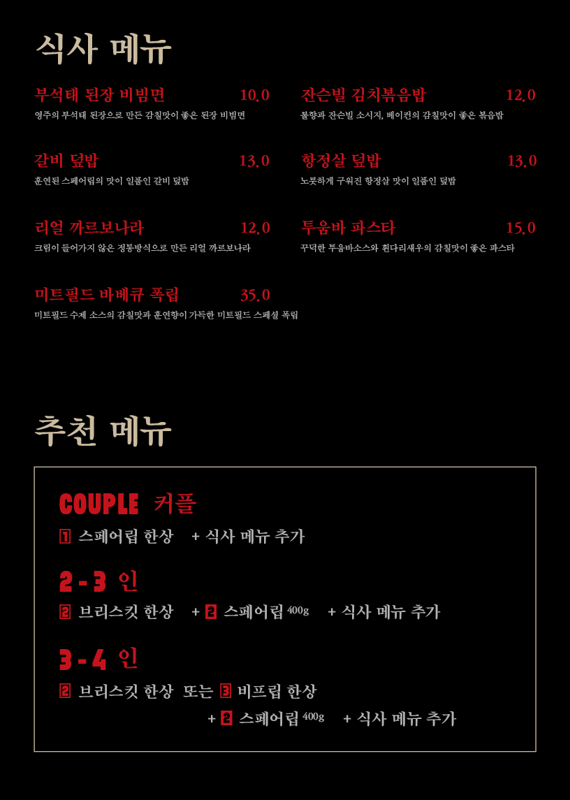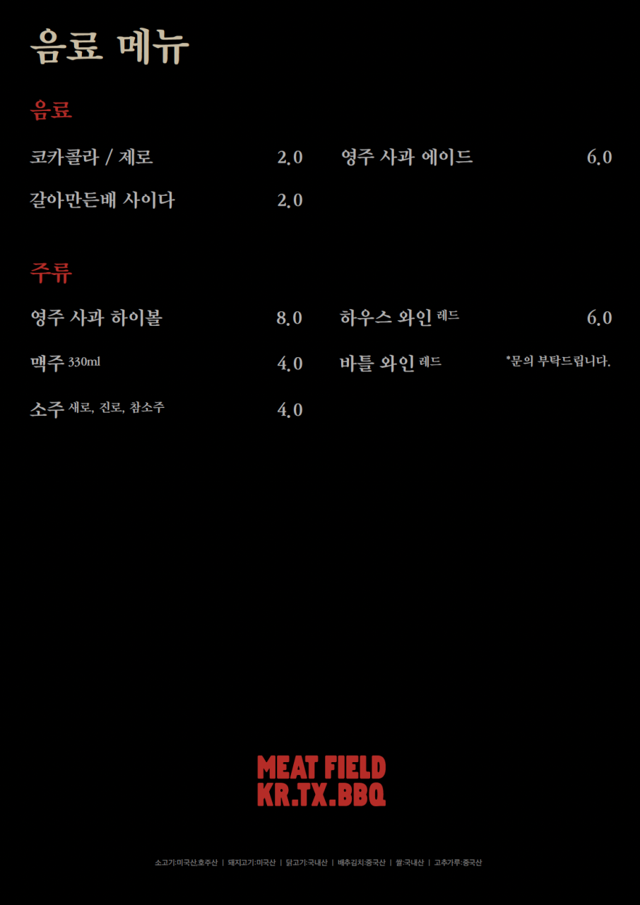 ☎️예약: 010-8227-7727 / https://www.instagram.com/meatfield.bbq.kr/