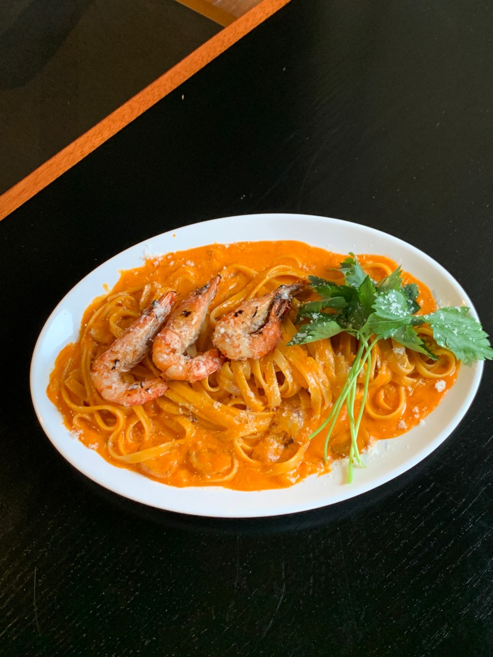 - 꾸덕한 투움바 소스와 흰다리새우의 감칠맛이 좋은 파스타