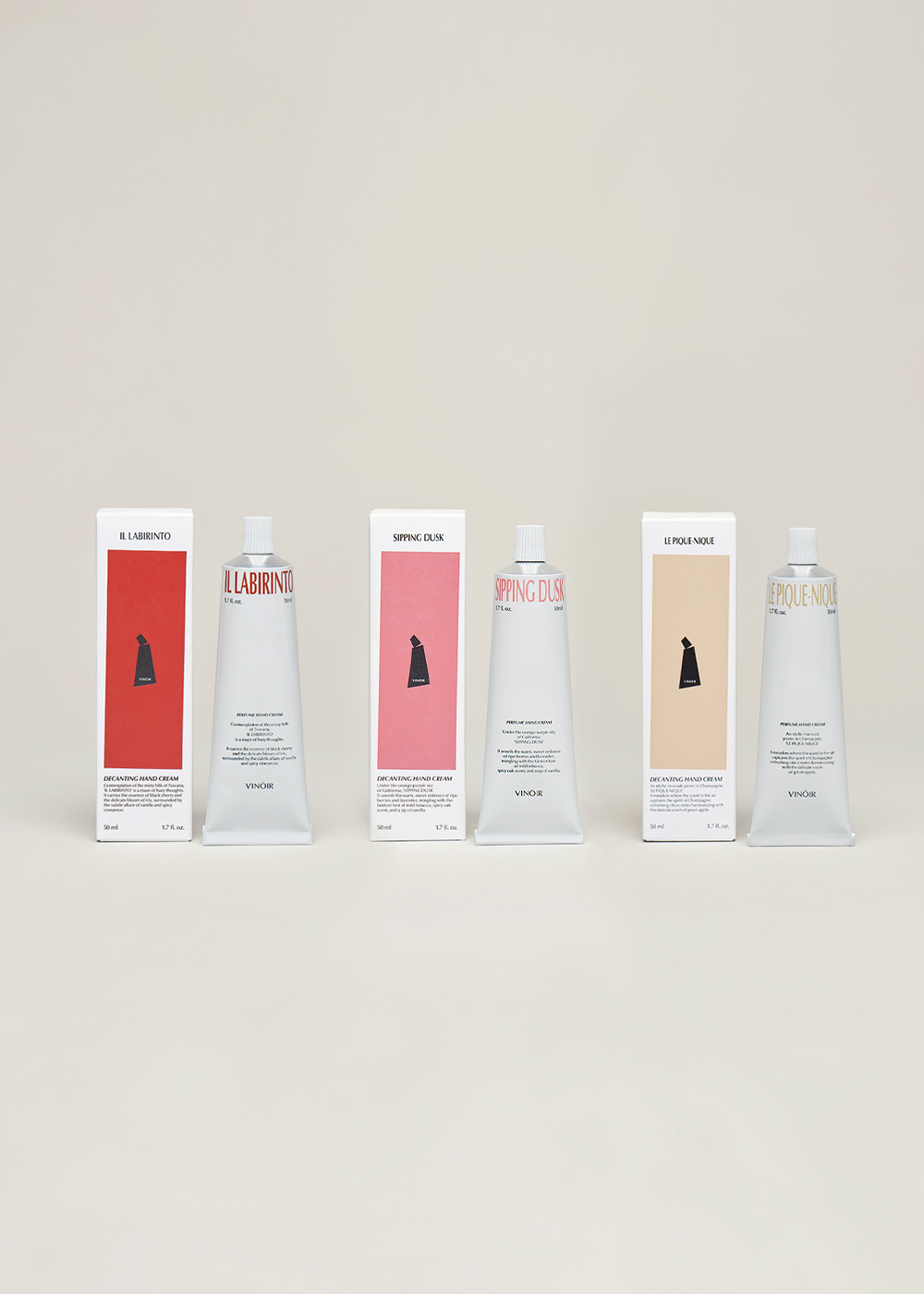 '일상을 디캔팅하다' 라는 브랜드 스토리에 걸맞게 빈느와는 세계 주요 와인 산지 3곳의 향을 담은 고체바, 핸드크림 제품을 출시했습니다.
