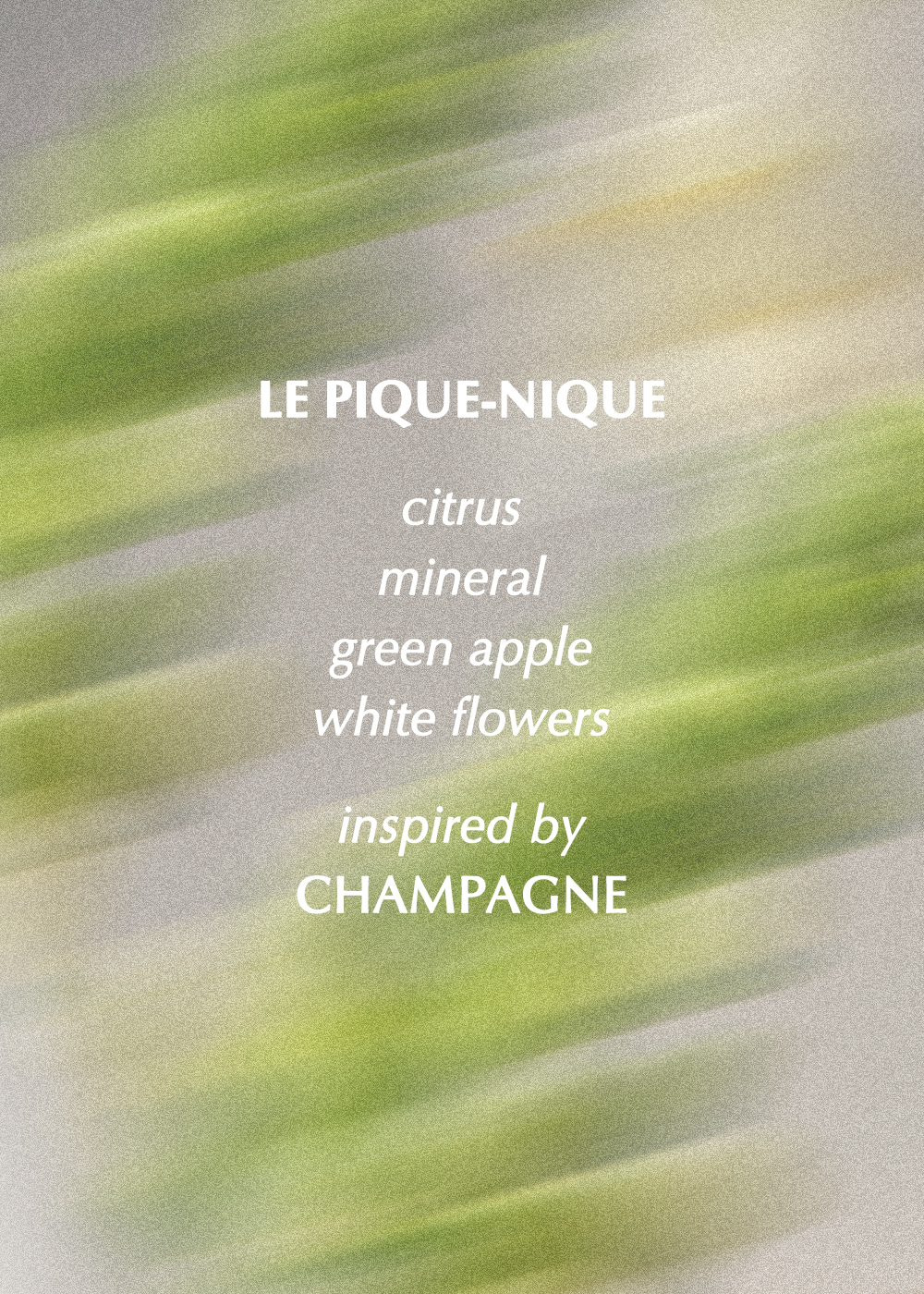 살랑이는 바람결에 시트러스와 풋사과 향이 싱그럽게 실려오는 흰 꽃밭, 나른해지는 시간들 사이로 풍기는 은은한 토스트 향과 영롱한 미네랄 향은 상파뉴에서의 소풍에 순수함과 청초함을 더해줍니다.