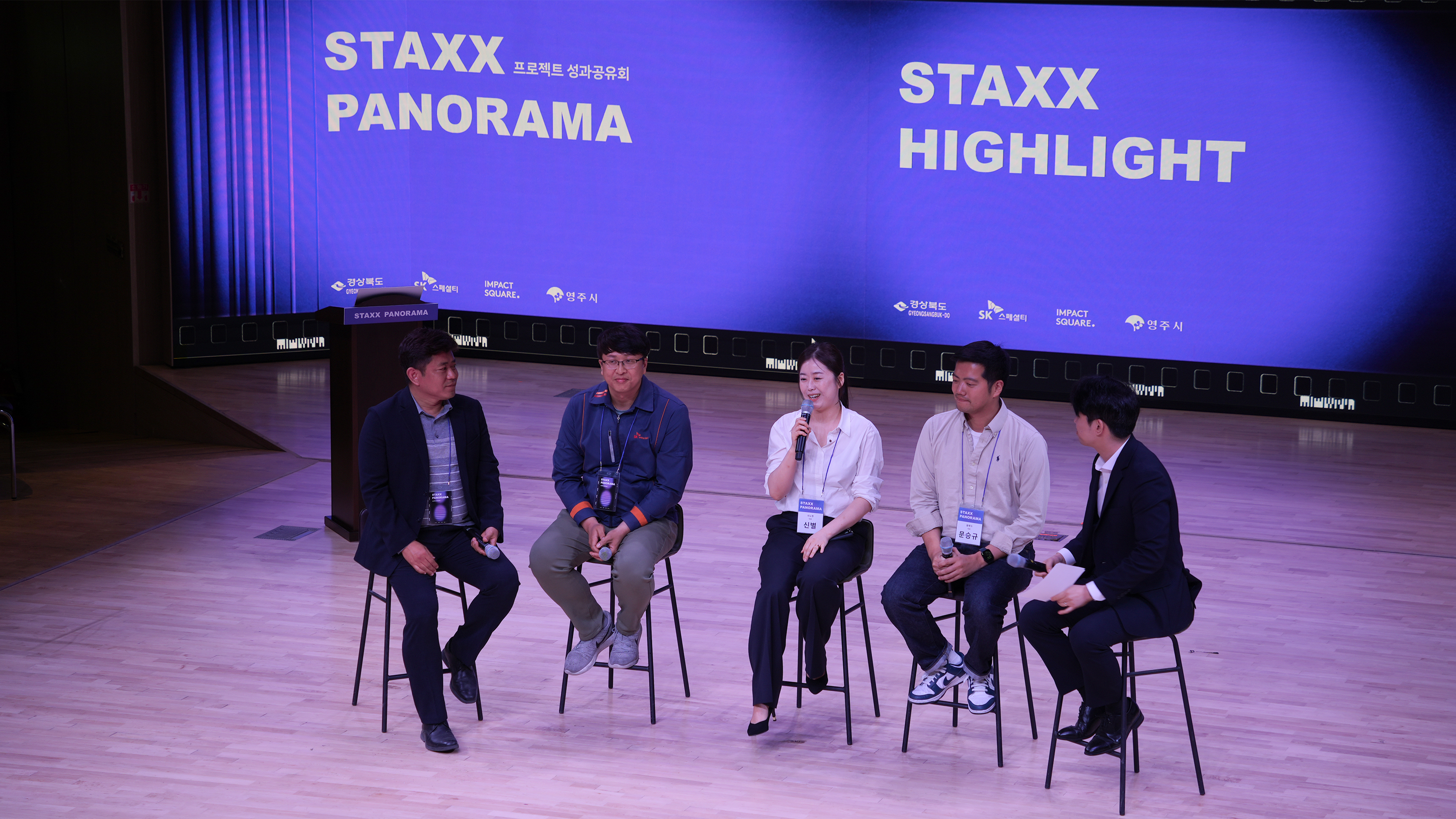 STAXX 프로젝트 참여 기업, 영주시, SK 스페셜티의 담당자들이 무대에 올라 토크 콘서트를 진행했습니다.
