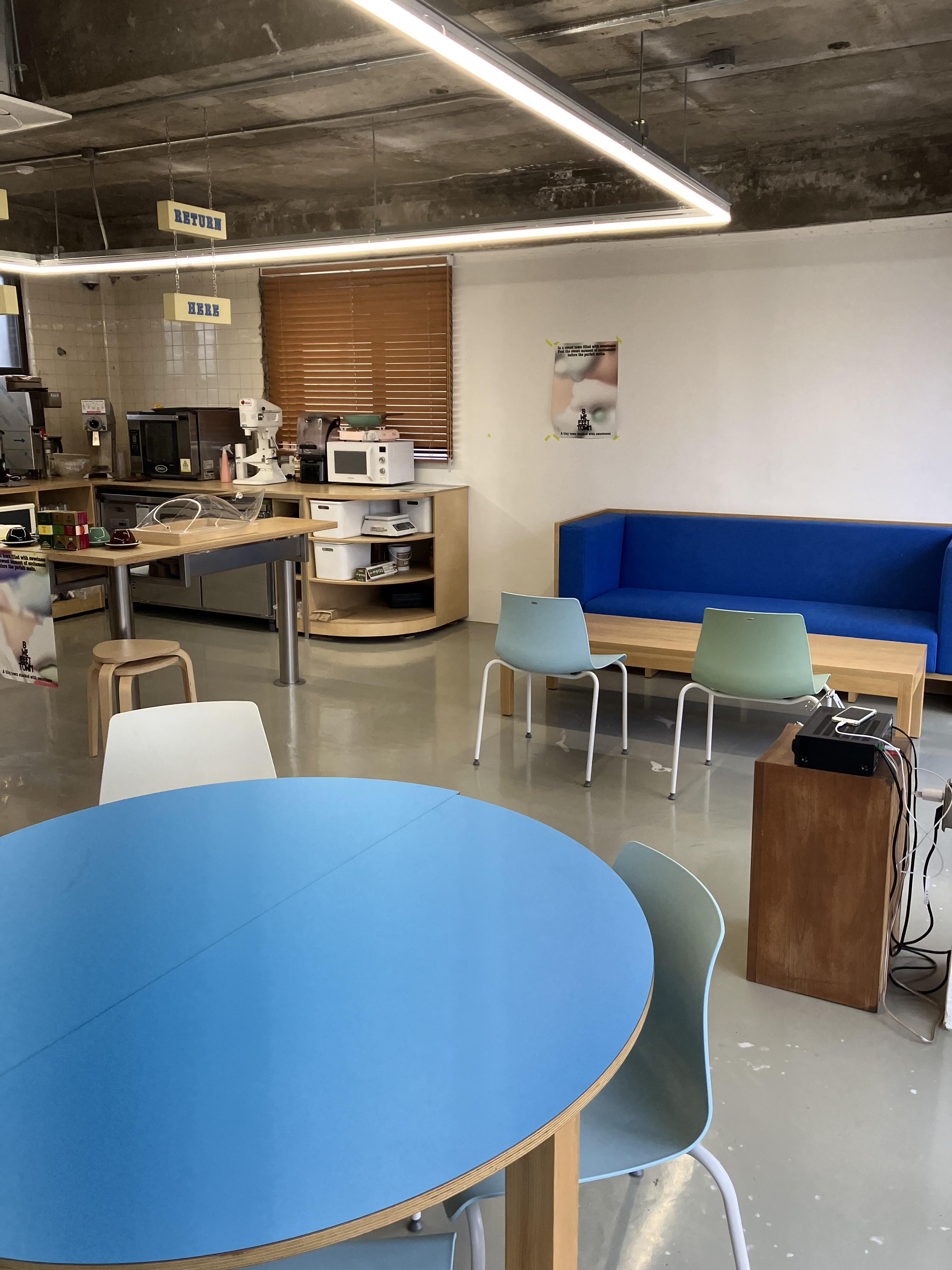 블루 계열의 포인트 컬러가 눈에 띄는 카페 내부입니다!