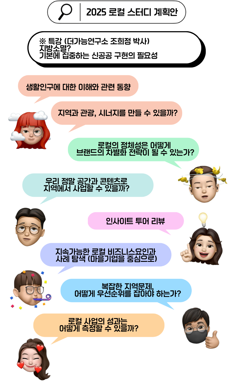 3월의 마지막날 9회차를 끝으로 25년 로컬 스터디는 대단원의 막을 내렸습니다! 로컬을 더 잘 이해하고 싶은 마음에서 시작된 이 치열한 9주의 시간은, 올 한해를 살아나갈 우리만의 감각을 쌓는 과정이었어요. STAXX 팀은 이 스터디를 통해 지역을 조금 더 깊이 들여다보았고, 그 과정에서 우리가 어떤 시선으로 지역(로컬)을 바라보는지, 어떤 고민을 품고 있는지도 자연스럽게 나눌 수 있었습니다.