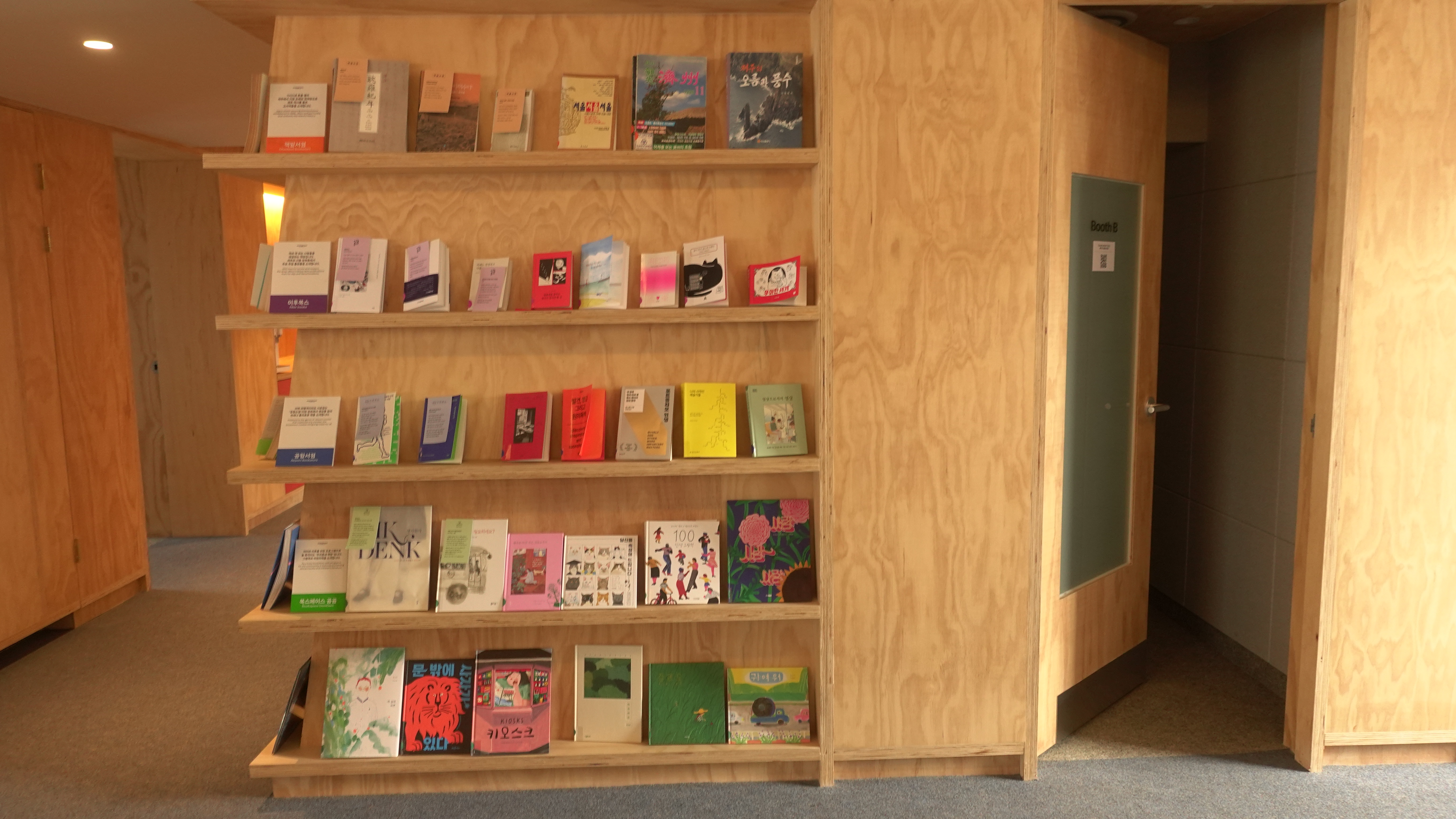 코워킹 스페이스에서 또 제 눈길을 끈 건, 제주의 독립서점에서 큐레이션한 책들이었어요. 네 개의 로컬 책방이 각자의 이유와 개성을 가지고 선정한 책들이 한자리에 모여 있었어요. 같은 공간에 놓여 있지만, 책방마다 고른 기준이 달라서인지 책 한 권 한 권이 전하는 분위기도 사뭇 달라서 책 표지만 구경해도 즐거웠답니다.