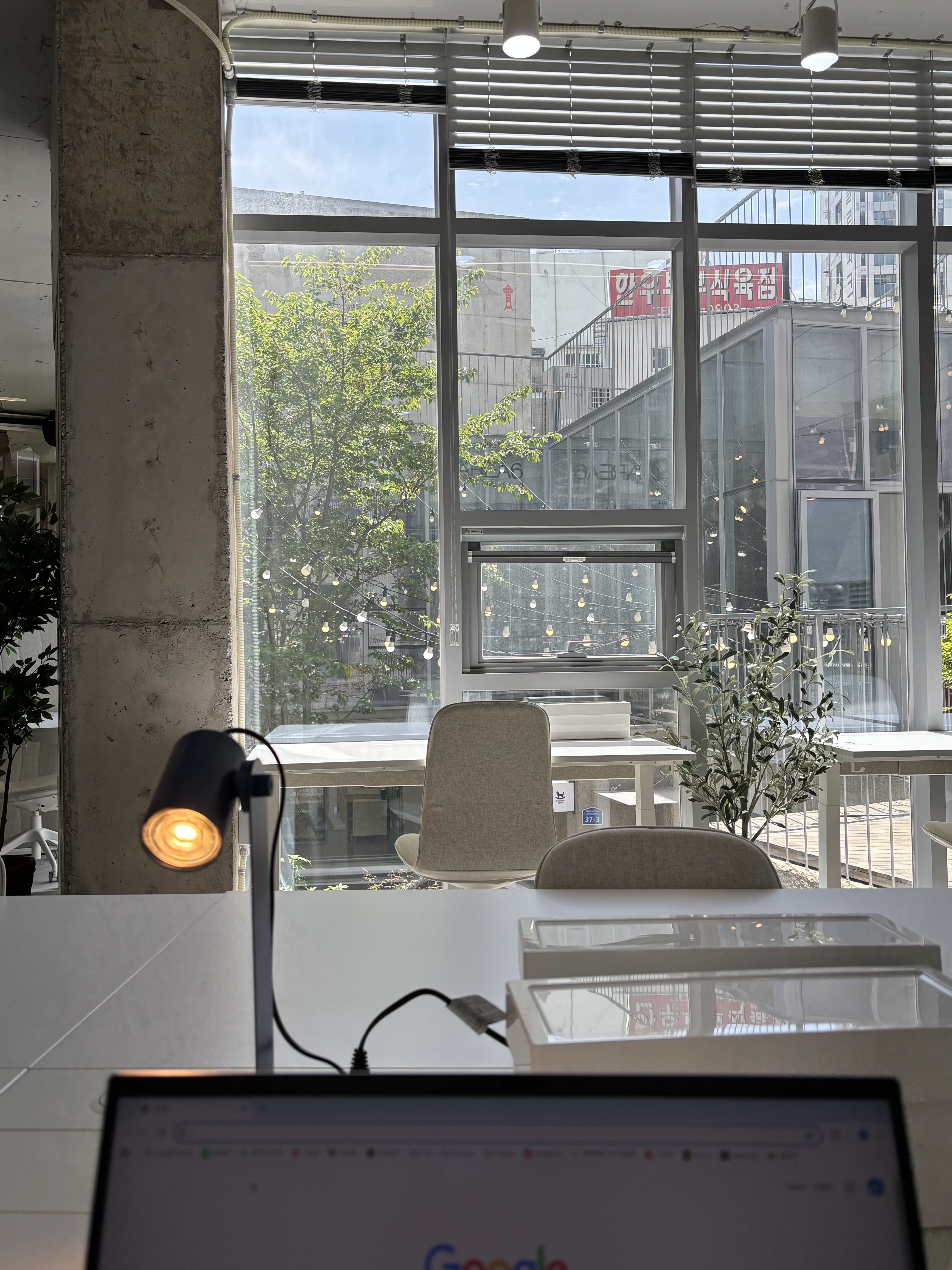 2층에는 STAXX처럼 코워킹 오피스가 있어요. 저희도 시간이 남는 김에 잠시 ‘카페 무라’에서 할인 혜택을 받아 커피를 마시며 일을 했는데요, 창문 밖의 봄 풍경을 보며 일하니 괜히 상쾌하게 술술 일이 처리되는 느낌이 들었어요.