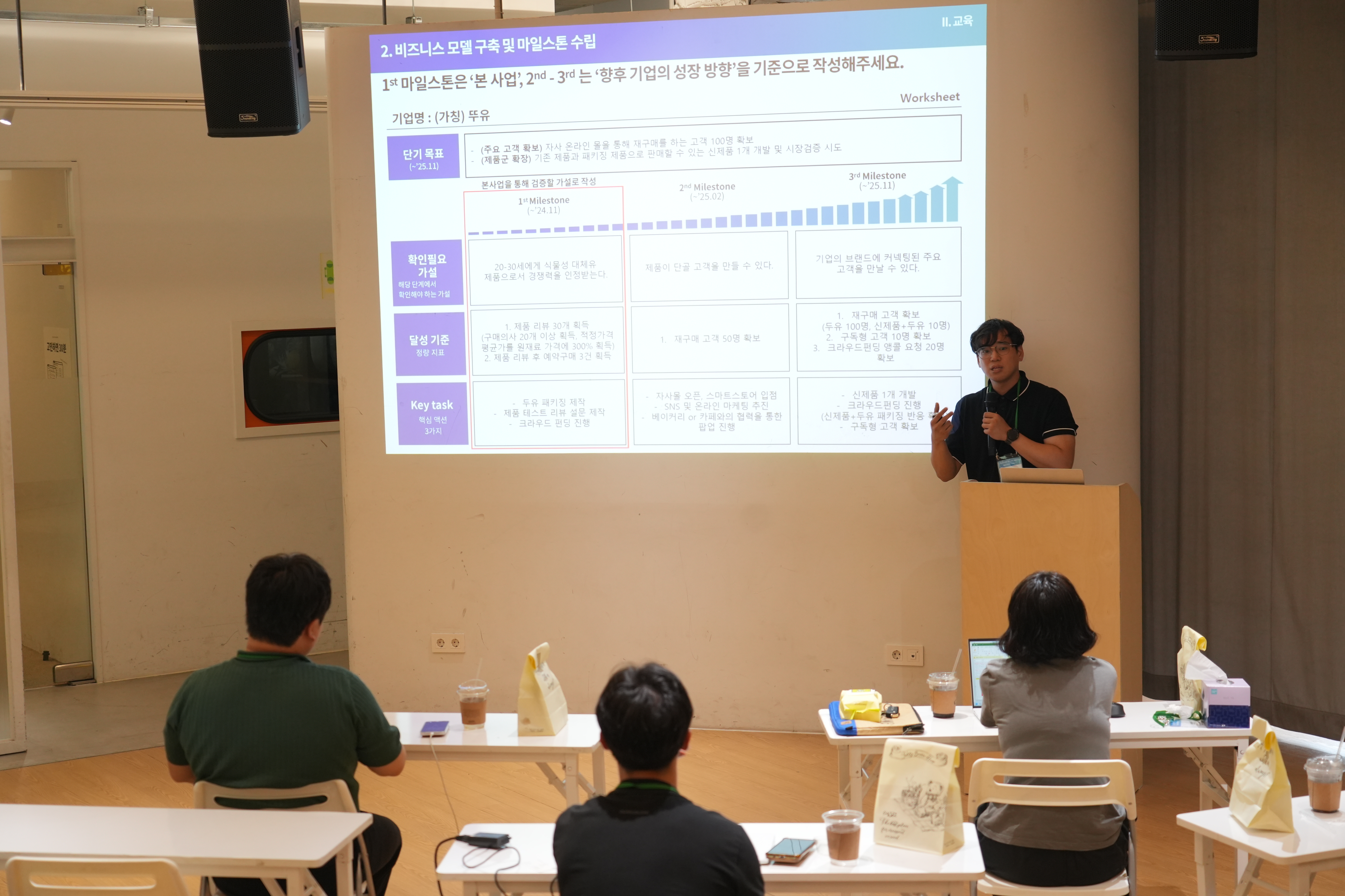 재훈: 저는 '내가 뭘 잘하고 뭘 못하는지를 아는 것'이 가장 중요하다고 생각해요. 그게 브랜딩일 수도 있고, 제품력일 수도 있죠. 액셀러레이팅을 통해 기업이 이를 정확히 파악하고 본인에게 필요한 부분을 해결해 나가는 것이 중요하다고 생각해요. 그런데 지원사업을 통해 지역의 기업을 만나다보면, 현실적으로 단기적인 매출 신장을 필요로하는 경우가 많아요. 기업이 이익을 창출하는 건 당연하지만, 지원사업이 종료된 이후에도 계속 성장할 수 있으려면 무엇보다 기업 스스로 나의 강점과 약점을 파악하는 힘이 필요해요.