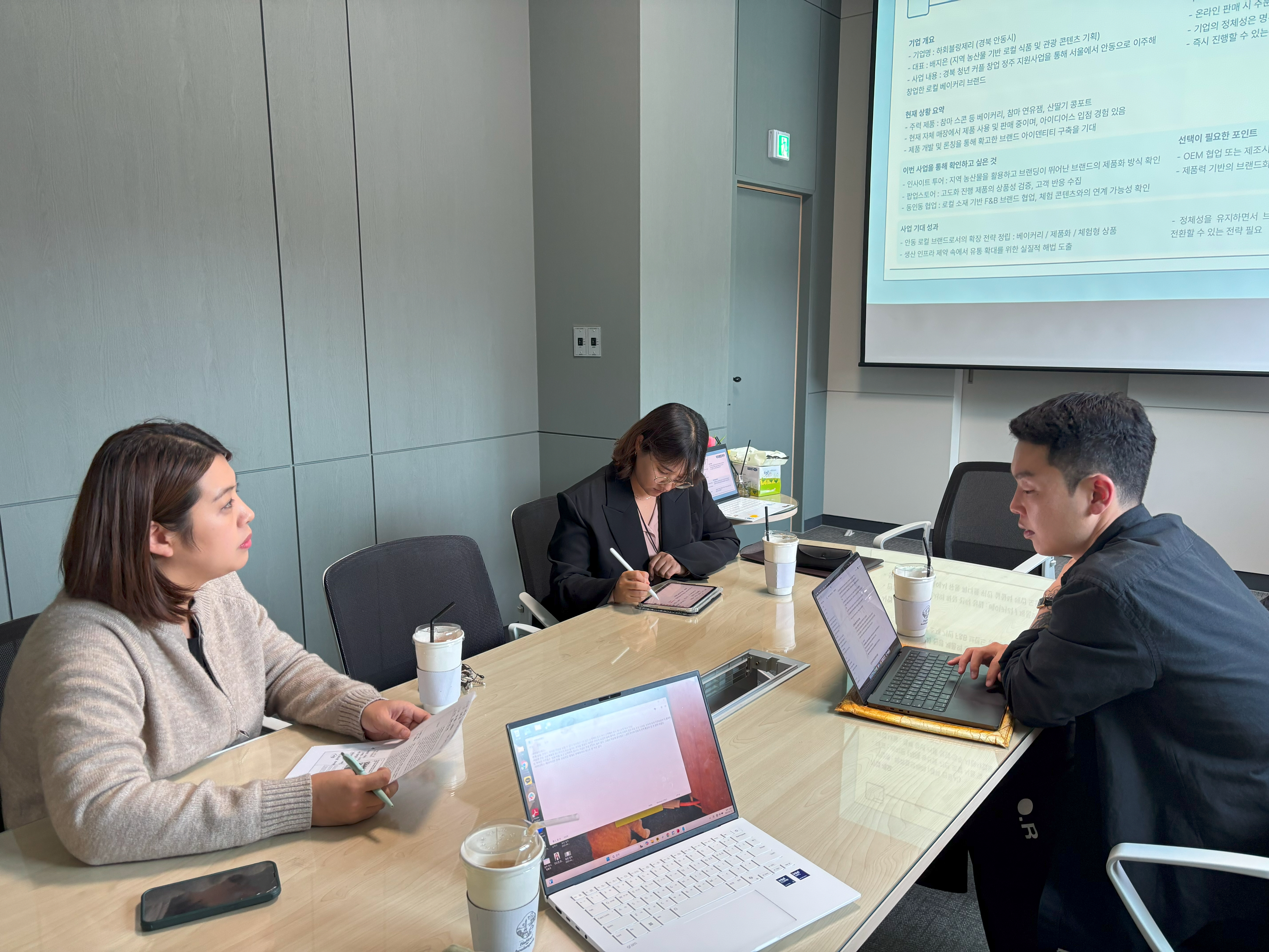 그렇게 도착한 각 기업에서 우리는 가장 먼저 대표님과 인사를 나누고 기업의 공간을 둘러보았다. 기업의 정수가 담긴 오프라인 매장을 운영하고 계신 곳도 있었고, 오프라인에서는 제품을 가공하는 과정만 거치고 오로지 온라인으로만 제품을 판매하는 기업도 있었다. 회의 장소로 이동해 본격적으로 오리엔테이션을 시작했다. STAXX팀과 지원사업의 진행 일정을 짧게 안내드린 후, 대표님께서 어떻게 사업을 시작하셨는지, 지금은 어떤 상태에 있는지, 기업 운영에 어려움을 느끼는 점은 무엇인지 등 심도 깊은 대화를 나눴다. 그 대화를 바탕으로 이번 사업에서 달성하고자 하는 목표를 정하고, 그 목표에 도달하기 위해 우리가 앞으로 어떤 과제를 풀어나가야 할지도 함께 의논했다.