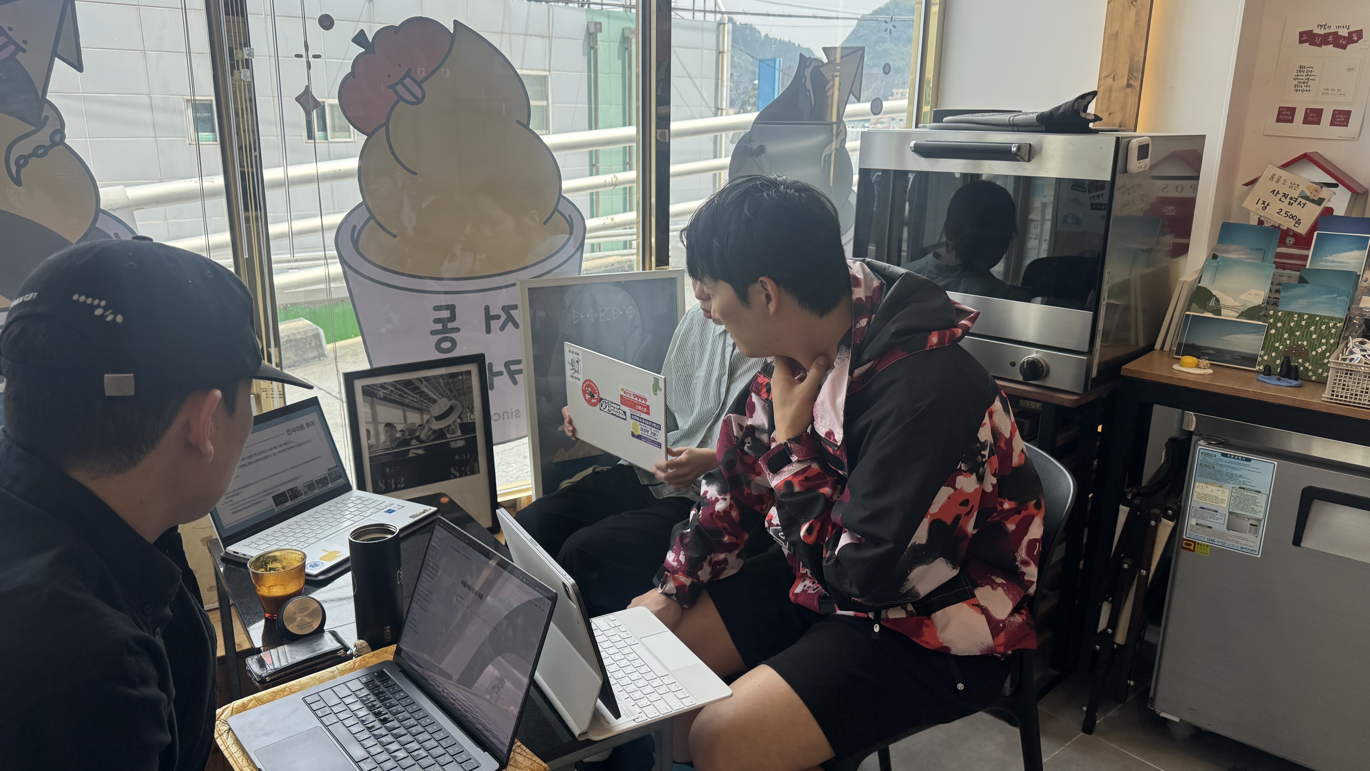 무엇보다 가장 인상 깊었던 건 울릉 저동커피였다. 찾아가는 과정이 길고 험했다. 뱃멀미의 무서움을 모른 채 쾌속정을 예매해버린 우리는 배 타기 전날부터 멀미에 좋은 생강차를 사고, 효과좋은 멀미약을 찾아다니며 온갖 난리를 쳤다. 울릉도에 가는 배 안에서는 앞, 뒤, 옆 사방에 심한 뱃멀미로 구토하는 사람들의 소리를 들으며 강제로 잠을 청하기도 했다. 그렇게 도착한 저동커피에서 만난 대표님의 한 마디는 우리가 하는 일이 큰 가치가 있음을 증명해줬다. “항상 제가 서울에만 갔었지, 직접 여기까지 오신 분들은 처음이에요.” 그간의 지원사업들이 현실에 닿지 않는다는 후기들을 왕왕 전해들었던 터라 ‘직접 찾아간다’는 행위 자체가 사업 전반에 대한 신뢰를 높인다는 걸 확실히 느낄 수 있었다. 단순히 운영사로서 사업 내용을 전달하는 시간이 아니라, 이 사업이 각 기업의 현실에서 어떤 방식으로 의미를 가질 수 있을지를 함께 고민한 시간이었다.