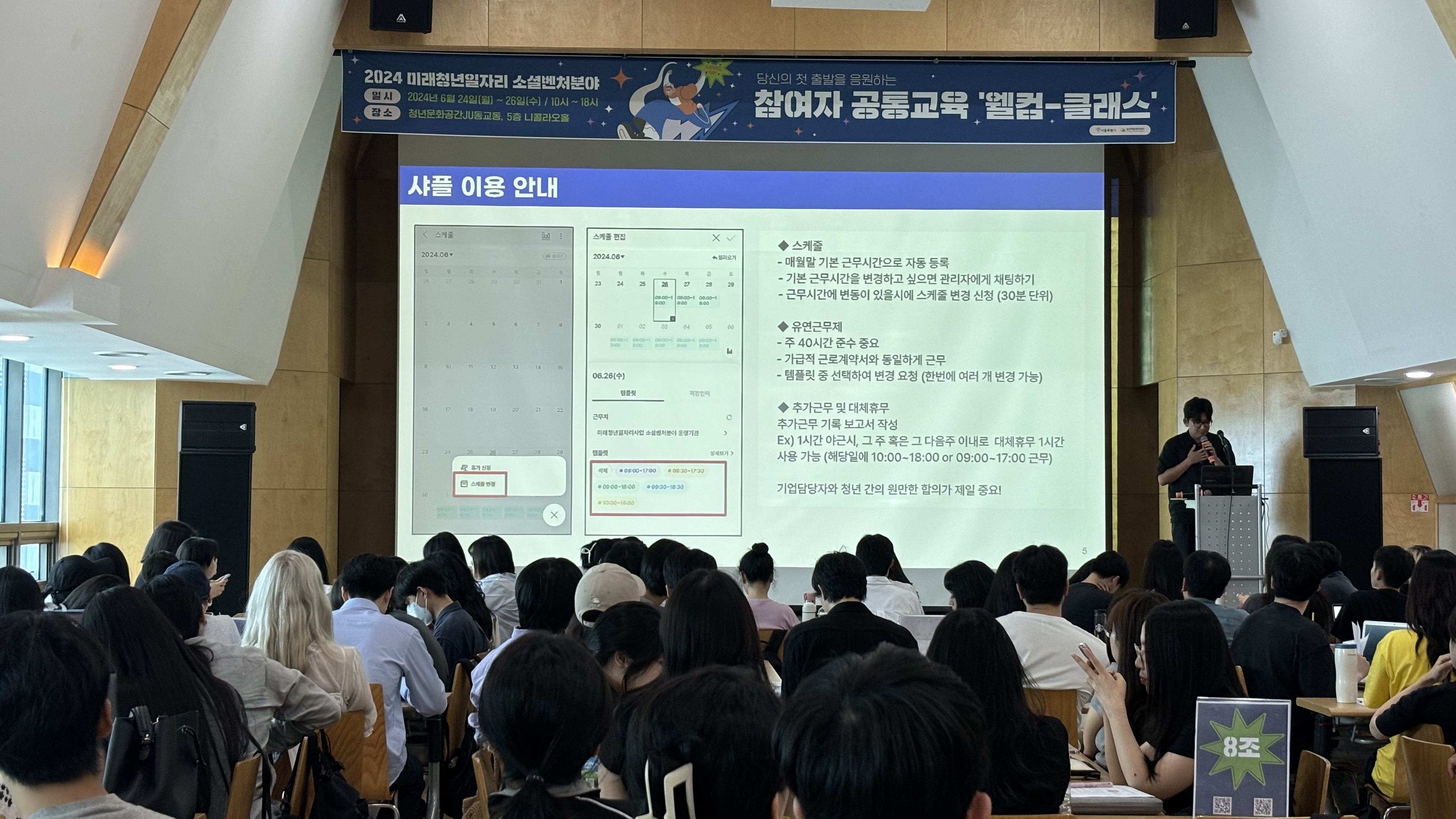 그 다음주부터 바로 3일 간의 참여자 공통교육을 받았습니다. 바로 기업에 배치되는 게 아니라 공통교육을 3일이라도 받으니 마음의 준비도 되고, 유용한 정보도 많아서 개인적으로 많이 도움이 되었어요. 특히 저는 소셜벤처라는 분야에 대해 아무 것도 몰랐기 때문에 여기서 들은 선배들의 이야기나 동종 업계 종사자 분들의 일하는 이야기들이 이 분야에 적응하는 데에 유익했어요.