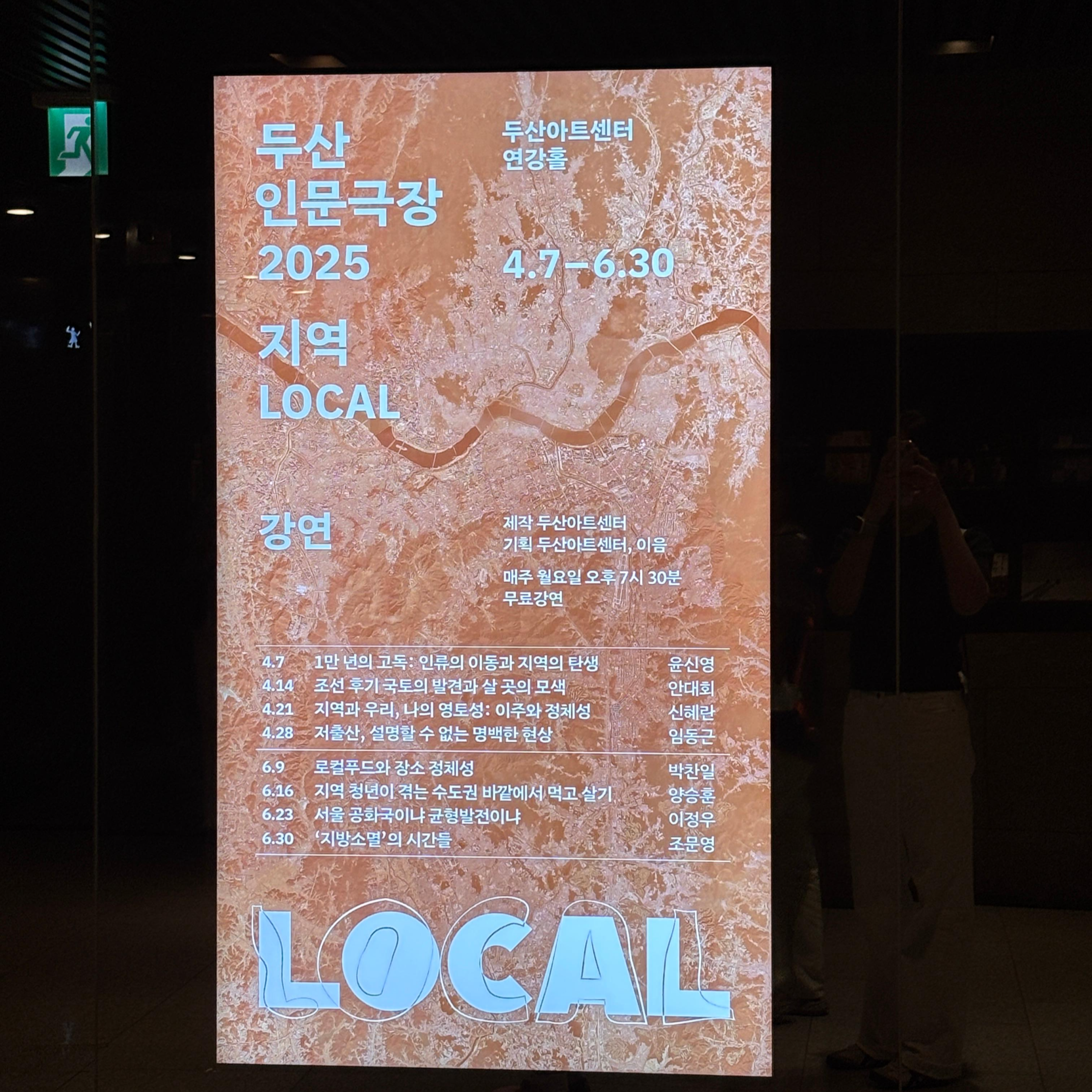 로컬이라는 주제가 정말 우리 사회에서도 중요한 이야기일까?를 고민하던 중 ‘두산인문극장’이 올해 주제로 ‘지역(LOCAL)’을 선정했다는 것을 알게 되었고, 이 주제가 나 혼자만의 고민은 아니었구나 하는 생각에 괜히 반가운 마음이 들었습니다.