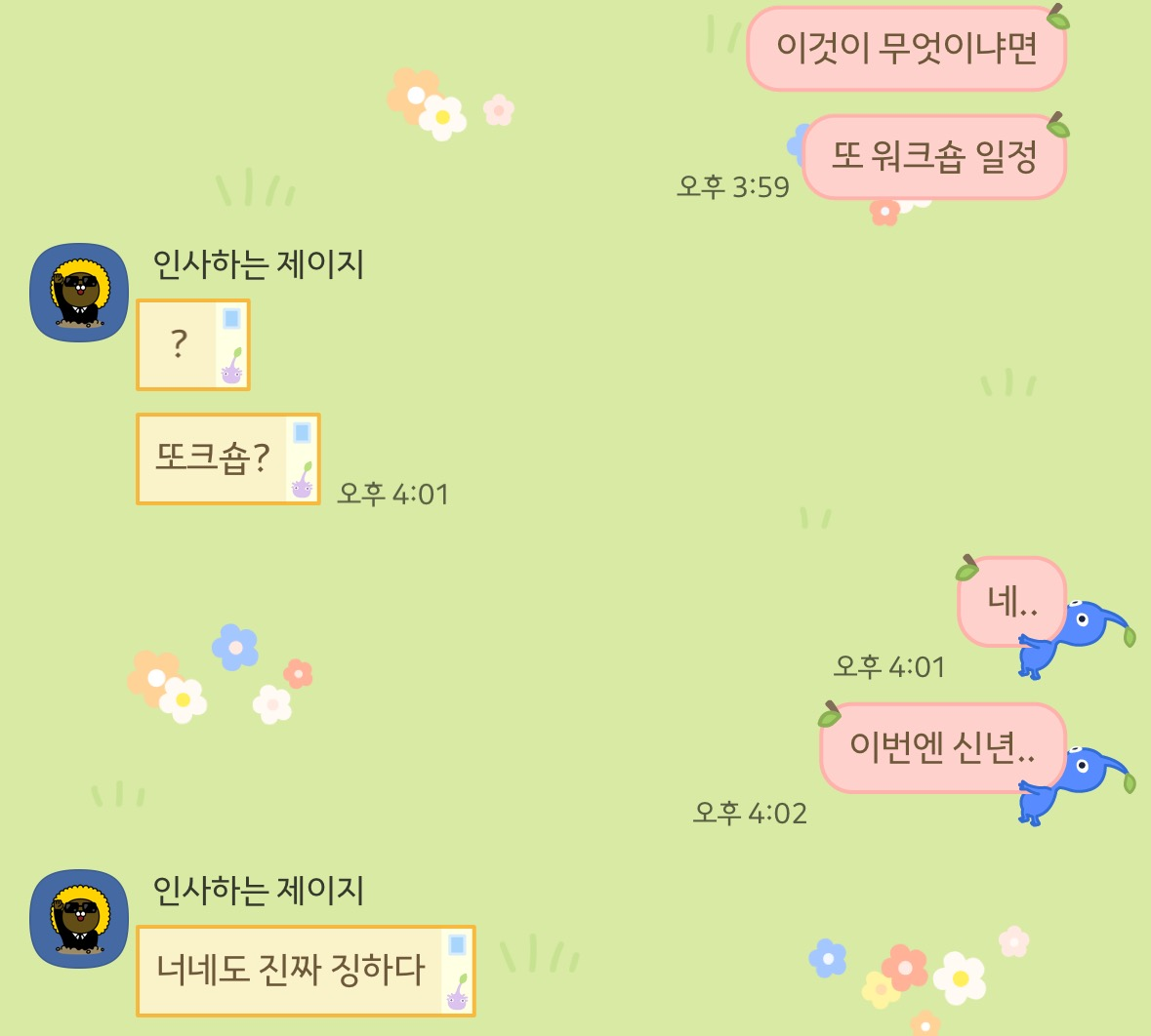 이건... 팀 워크숍 이후 전사 워크숍 일정이 나왔을 때 제 친구와의 대화입니다