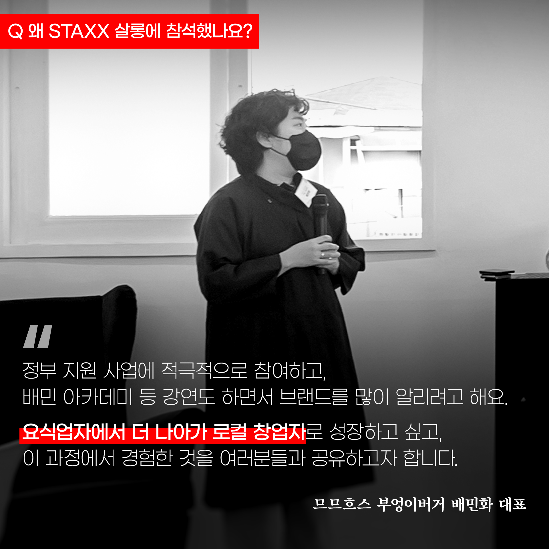 경북 지역의 로컬 창업자를 위한 네트워킹 'STAXX SALON' 2022.10.12 17:10 Archive./소셜미디어 아카이브 영주시 커뮤니티 허브 공간 STAXX🍎이곳에 경북을 무대로 활동하는 로컬 창업자를 위한 네트워킹 프로그램‘STAXX 살롱’이 열렸었는데요.⠀과연 어떤 주제로 이야기꽃을피웠는지 카드뉴스로 확인해보세요!⠀아래 게시물에서 더 자세히 보실 수 있습니다. 경북 로컬 창업자, STAXX 살롱에서 비즈니스를 이야기하다 9월 28일, 드디어 STAXX 준공식이 열렸습니다! STAXX는 영주 로컬 소셜벤처의 든든한 조력자이자, 다양한 사람들이 교류할 수 있는 공간으로 활용할 예정인데요. 향후 영주시 경제 활성 staxx.tistory.com 가치를 쌓아 변화를 만듭니다.STAXX, the Impact Stack. 공유하기 게시글 관리 STAXX 블로그 저작자표시 비영리 변경금지 (새창열림) 'Archive. > 소셜미디어 아카이브' 카테고리의 다른 글 STAXX INSIGHT SERIES : ZOOM IN 강릉&속초 1박 2일 체험 프로그램 (0) 2022.10.26 STAXX 랜선투어 GO! (0) 2022.10.20 청년교류공간 STAXX 준공식 현장 (0) 2022.10.07 이제 STAXX가 문을 엽니다 (0) 2022.10.07 SOVAC에서 로컬을 말하다 : '흔들어보자, 로컬!' 세션 리뷰 (0) 2022.09.23 댓글 공유하기 다른 글 댓글 이 글 공유하기 구독하기 구독하기 카카오톡 카카오톡 라인 라인 트위터 트위터 Facebook Facebook 카카오스토리 카카오스토리 밴드 밴드 네이버 블로그 네이버 블로그 Pocket Pocket Evernote Evernote 다른 글 STAXX INSIGHT SERIES : ZOOM IN 강릉&속초 1박 2일 체험 프로그램 STAXX INSIGHT SERIES : ZOOM IN 강릉&속초 1박 2일 체험 프로그램 2022.10.26 STAXX 랜선투어 GO! STAXX 랜선투어 GO! 2022.10.20 청년교류공간 STAXX 준공식 현장 청년교류공간 STAXX 준공식 현장 2022.10.07 이제 STAXX가 문을 엽니다 이제 STAXX가 문을 엽니다 2022.10.07 다른 글 더 둘러보기