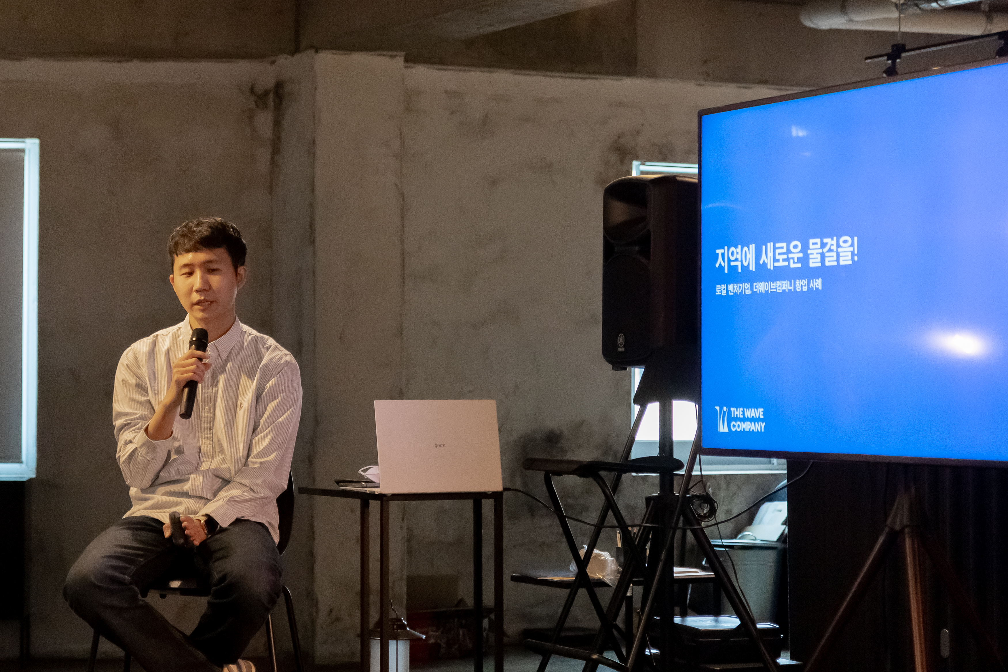 사업장을 직접 방문하고 나서, 더더욱 창업 스토리가 궁금해지는 세션이 이어졌습니다. 더웨이브컴퍼니를 지역에 새로운 물결(Wave)을 만드는 기업으로 소개한 최지백 대표는 강릉에 온 이유에 대해 '하고 싶은 일을 하기 위해, 그리고 강릉에서 원하는 라이프 스타일을 살아보기 위해'라고 설명했는데요. 이는 더웨이브컴퍼니가 창업을 결심하게 된 이유와 연결이 됩니다. 답은 강릉 그 자체에 있었죠.