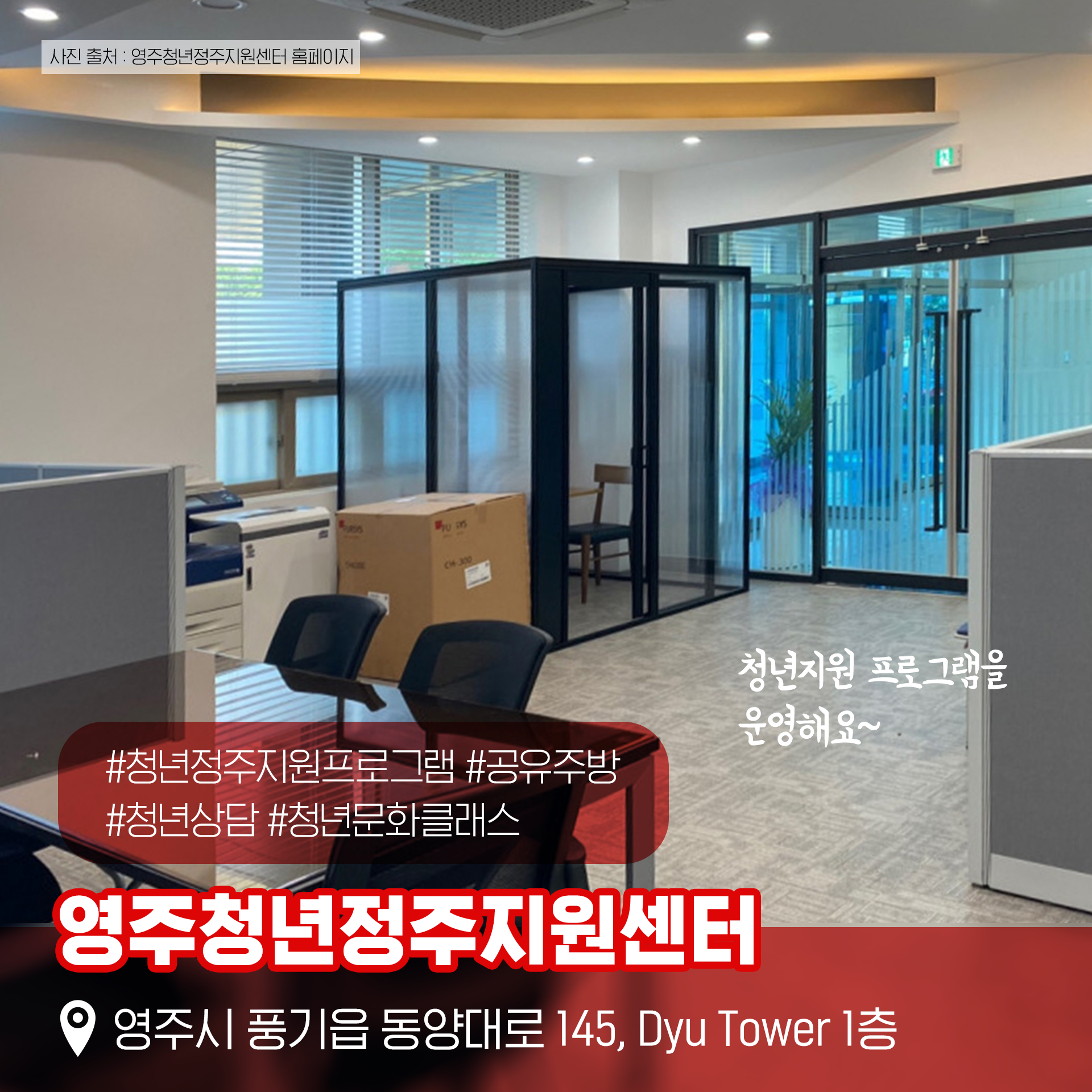 창업의 꿈을 실현해 주기 위한 영주의 노력이 모여 청년교류 공간이 조성되었어요. 막막한 창업의 시작을 많은 사람과 교류하며 하나씩 차근차근 준비해 보면 어떨까요? 영주는 여러분의 꿈을 응원합니다. 앞으로 영주에서 일어나는 변화와 발전을 지켜봐 주세요!