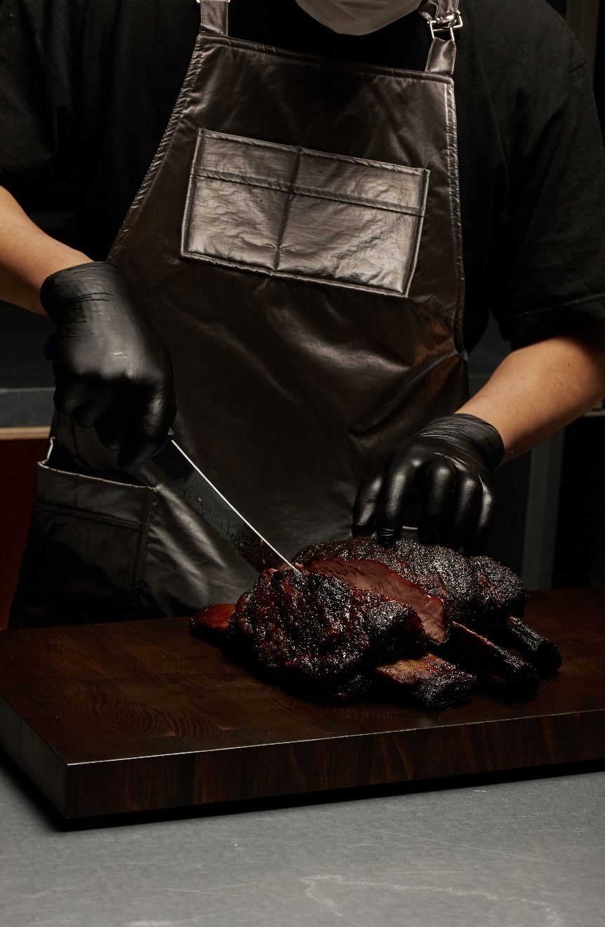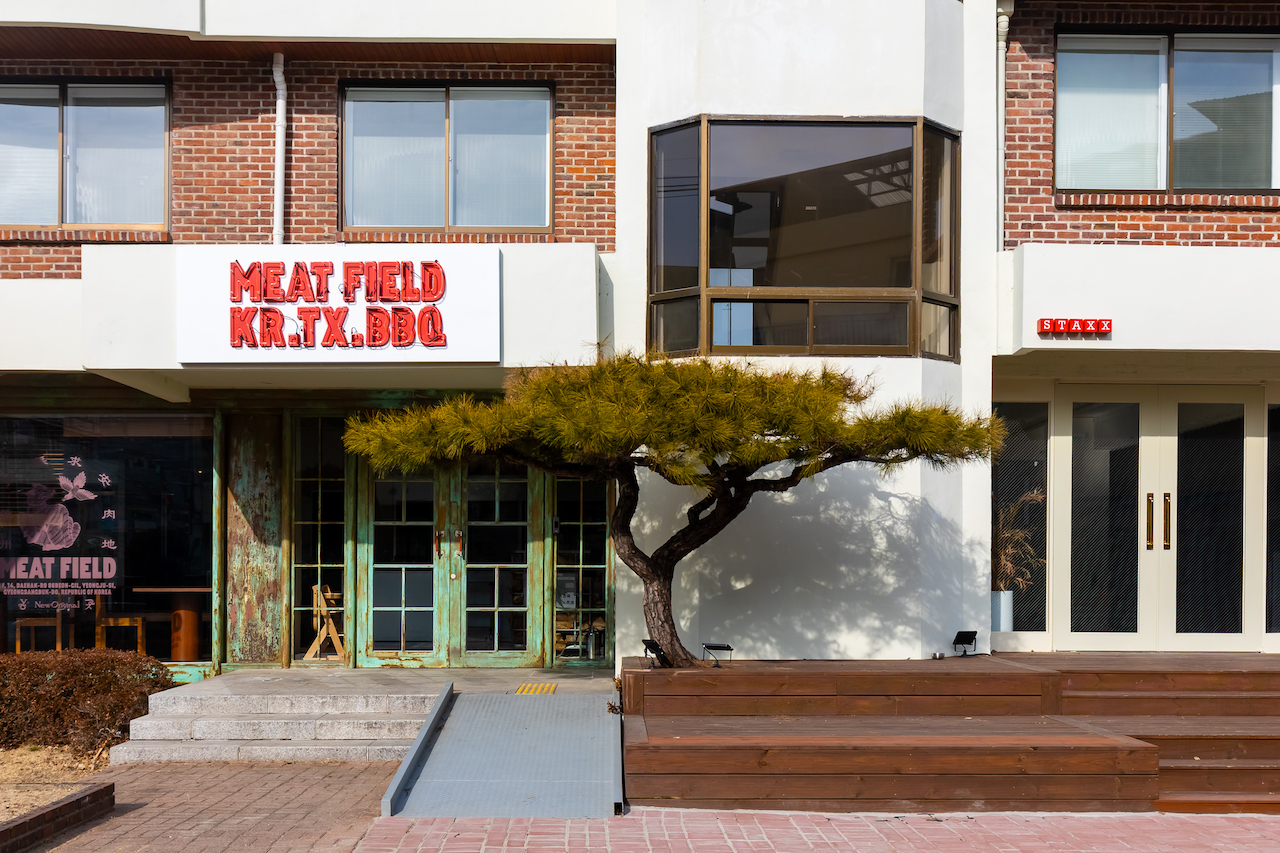 우선 미트필드는 텍사스 전통 방식과 한국의 장과 재료를 더한 새로운 형태의 바비큐를 선보이는 패밀리 다이닝 공간이고요. STAXX 프로젝트 참가 제의가 들어왔을 때부터 고민했던 게 PCC가 ‘영주’에 간다면 무엇으로 승부를 볼 수 있을까 생각했어요. 그리고 ‘콘텐츠’가 떠올랐죠. 바비큐가 우리가 할 수 있는 음식 콘텐츠 중에 가장 멀리서 사람을 모이게 할 수 있고, 이 음식을 먹기 위해서 사람들이 한두 시간 차를 타고 올 수 있는 콘텐츠라 믿었어요. 영주의 첫 발걸음에 콘텐츠는 이미 정해져 있었고, 그 이후에 지역 자체에 시선을 옮겨 단순히 영주가 아닌 세련되고 색다른 영주로 보이게끔 미트필드를 형성하고 준비했죠.