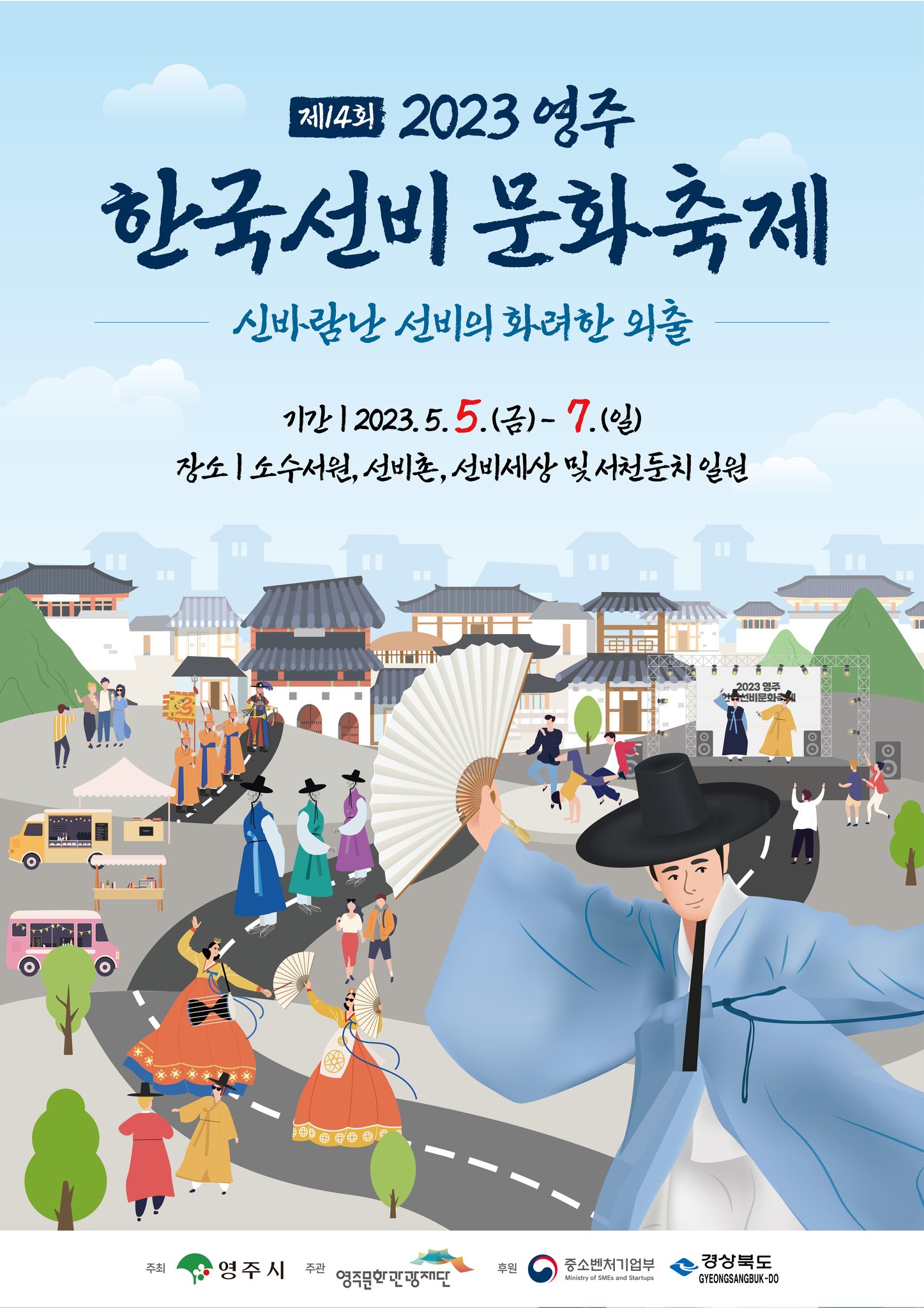 곧 다가올 5월, 가정의 달을 맞이하여 영주 여행을 추천합니다. 선비정신을 느낄 수 있는 도시, 경북 영주에서 ‘2023 영주 한국선비문화축제’가 개최됩니다! 오는 5월 5일부터 7일까지 3일간 축제가 열리는데요. 올해는 ‘신바람 난 선비의 화려한 외출’을 주제로 우리 민족의 생활 철학이 담긴 선비정신, 선비의 삶과 풍류를 체험할 수 있는 다양한 행사들이 펼쳐질 예정이라고 합니다. 특히 이번 축제는 팬데믹으로 인해 4년 만에 진행되는 대면 행사인 만큼 관광객과 더불어 지역민들도 즐길 수 있는 편하고 펀한 축제를 추진하는 데 초점을 맞췄다고 해요. 소수서원과 선비촌, 선비세상을 비롯해 영주 시민들에게 사랑받는 장소인 서천둔치까지 축제장을 확대했는데요. 도시 전체가 축제장으로 변하는 영주에서 설레고 독특한 경험을 느껴보세요.